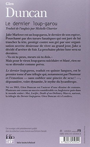 Le dernier loup-garou Glen Duncan texte complet - Le dernier loup-garou a été écrit par Glen Duncan qui connu comme un auteur et ont écrit beaucoup de livres intéressants avec une grande narration. Le dernier loup-garou a été l'un des livres de populer sur 2016. Il contient 464 pages et disponible sur format . Ce livre a été très surpris en raison de sa note rating et a obtenu environ avis des utilisateurs. Donc, après avoir terminé la lecture de ce livre, je recommande aux lecteurs de ne pas sous-estimer ce grand livre. Vous devez prendre Le dernier loup-garou que votre liste de lecture ou vous serez regretter parce que vous ne l'avez pas lu encore dans votre vie.Rang parmi les ventes Amazon: #175770 dans LivresPublié le: 2014-10-30Langue d'origine: AnglaisDimensions: 4.33" h x .75" l x 7.09" L, Reliure: Poche464 pagesPrésentation de l'éditeurJake Marlowe est un loup-garou, le dernier de son espèce. Pourchassé par des tueurs fanatiques qui ont juré de lui trancher la tête, protégé contre son gré par une organisation secrète désireuse de vivre au grand jour, Jake a décidé d'arrêter de fuir. La prochaine pleine lune sera sa dernière. "Va où tu peux, meurs où tu dois". Mais pour le vieux loup-garou suicidaire et blasé, rien ne va se dérouler comme prévu. Le dernier loup-garou, traduit en quinze langues, est le premier tome d'une trilogie qui, notamment par l'humour et l'émotion - sans oublier une pincée de sexe! -, dépoussière, voire dynamite, le mythe du lycanthrope.Biographie de l'auteurNé en 1965, Glen Duncan est l'auteur d'une dizaine de romans. Plusieurs ont connu un succès considérable en Angleterre puis dans le monde entier : Moi, Lucifer, Death of an Ordinary Man et, surtout, la trilogie du Dernier loup-garou. Glen Duncan vit à Londres.